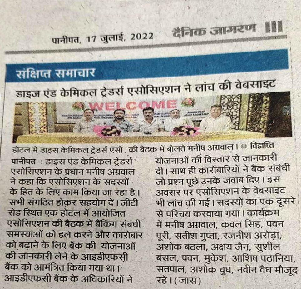 Dyes & Chemical Association Launching his Website at 9.oo pm 16 July 2022.